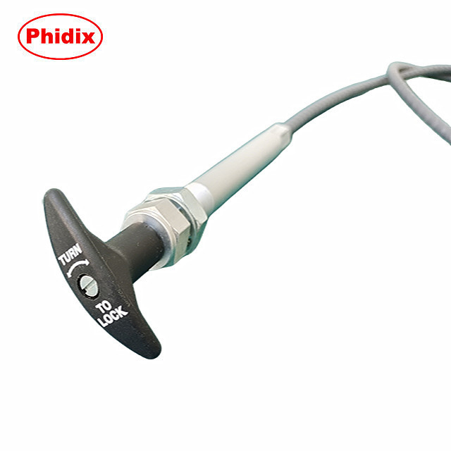 The twist lock handle push-pull control cable is a heavy-duty mechanical control solution engineered for precise linear motion transmission and secure position locking in demanding environments. Designed for high-load applications, this cable features an ergonomic twist lock handle that allows operators to set a desired position and lock it firmly in place by rotating the handle, preventing accidental movement caused by vibration, impact, or external forces. Built with a high-strength steel inner core and a reinforced low-friction outer conduit, the Twist Lock Handle Push-Pull Control Cable ensures smooth operation, accurate response, and long-term reliability. Its threaded bulkhead mounting system provides stable installation, making it ideal for industrial, automotive, marine, agricultural, and heavy-equipment applications.